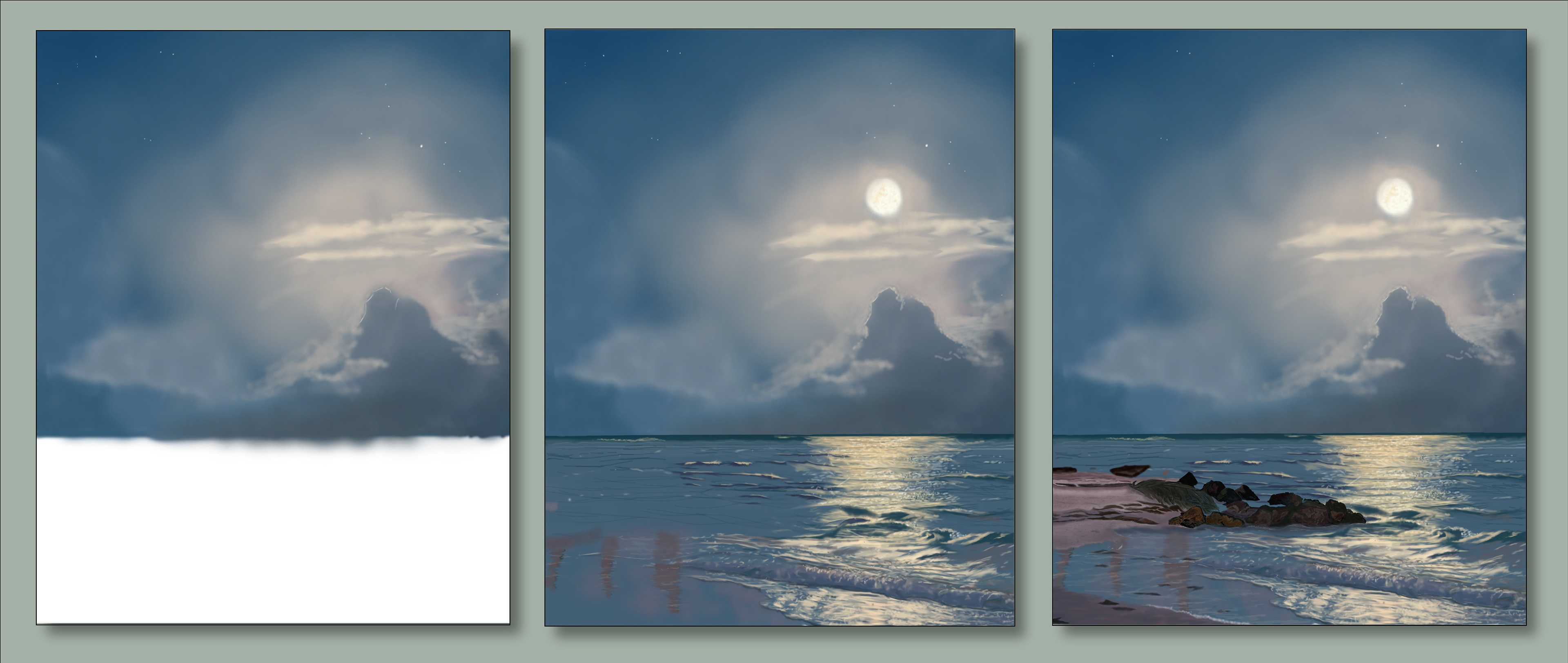 Digital painting "Sailing" project progression